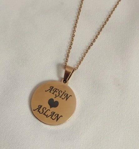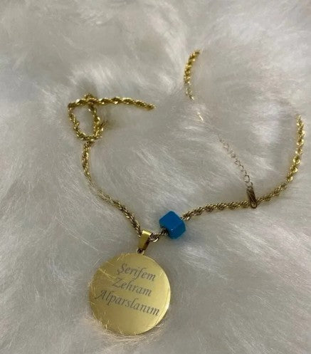 Kişiye Özel İsimli Altın Rengi Yuvarlak Plaka Çelik Kolye